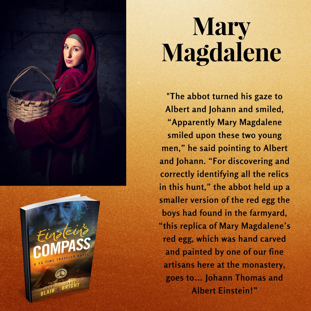 In my writing process, I sit at my computer and compose whatever appears in my mind. When I run out of words, I get up and do chores, wash dishes or walk. In meditation, I send loving thoughts and bless the story. Usually a character or a theme of the narrative will appear to me in pictures. When writing “Einstein’s Compass a YA Time Traveler Adventure”, I was working an episode in the mountains outside of Munich, Germany. Albert and his companion Johann visit a monastery. Using Albert’s supernatural compass, the boys take part in the annual treasure hunt of Mary Magdalene’s Feast Day. Unexpectedly, in my mind, Mary Magdalene appears to me. She wishes to be in the story. The heavenly saint advises me to compose the chapter. After I write the episode I learned in my research, she remained the last thirty years in a cavern in the south of France. My husband and I were traveling on a Mediterranean cruise in a few weeks and would be near her last resting place. I arranged for a guide to take me to the Grotto where Dominican Monks have a sanctuary dedicated to Mary Magdalene. In the sanctuary, I pray to her and seek a blessing. To my right, a golden light appears I hear her voice, “Welcome Sister”.